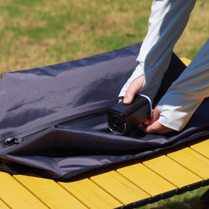 Powerful mini pump that inflates air mattresses,